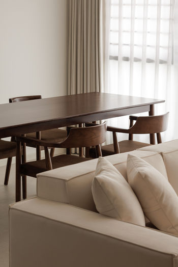 Furniture is understated, functional, and proportioned for comfort while harmonising with the overall aesthetic.